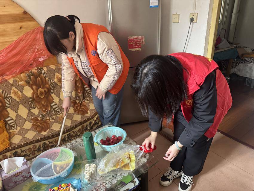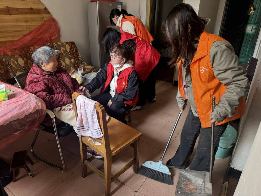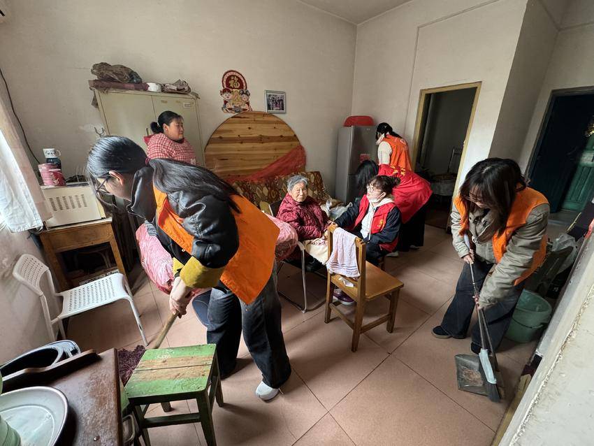 活动当天,青年志愿者与社区工作人员兵分四组,携带爱心物资与服务工具,深入4户老人家中。他们发挥各自特长,提供一系列贴心务实的服务:有的志愿者细致地为老人测量血压,耐心讲解日常健康保健知识;有的利用手机现场协助行动不便的老人完成退休待遇领取资格认证(退休证年审),化解“数字鸿沟”与奔波之忧;更多志愿者拿起扫帚、抹布,帮助老人清扫房间、整理物品,让家居环境焕然一新。在提供实际帮助的同时,志愿者们更注重精神陪伴,围坐在老人身旁倾听往事与生活近况,一声声关切的问候、一句句贴心的叮咛,让平日略显寂静的屋内充满欢声笑语,洋溢融融暖意。大学生青春的温暖力量如潺潺暖流,悉心润泽着夕阳般的老年群体,助力他们安享幸福晚年。