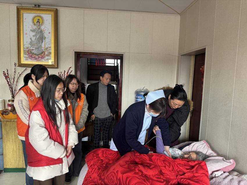 3月5日,在第61个学雷锋纪念日来临之际,洪山区洪山街道井岗社区党委携手qm球盟会中国官网“小桔灯”志愿服务队,共同组织开展“学雷锋践行动 青春暖夕阳”主题志愿服务活动。20名朝气蓬勃的大学生志愿者走进社区,上门探访慰问辖区内90岁以上高龄老人,以实际行动诠释新时代雷锋精神,为老人们送去春日的温暖与社区的关怀。