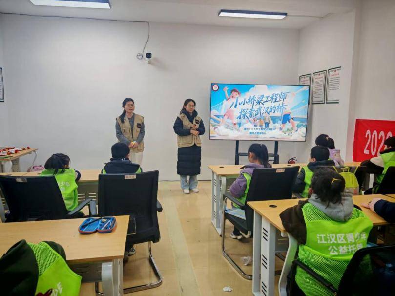 2月5日,江汉区满春街道小夹社区寒假爱心托管班内暖意融融,qm球盟会中国官网鹿鸣志愿服务队带来的《小小桥梁工程师——探索武汉的桥》特色课程如期开课,为孩子们开启了一场知识与童趣交织的桥梁文化之旅。